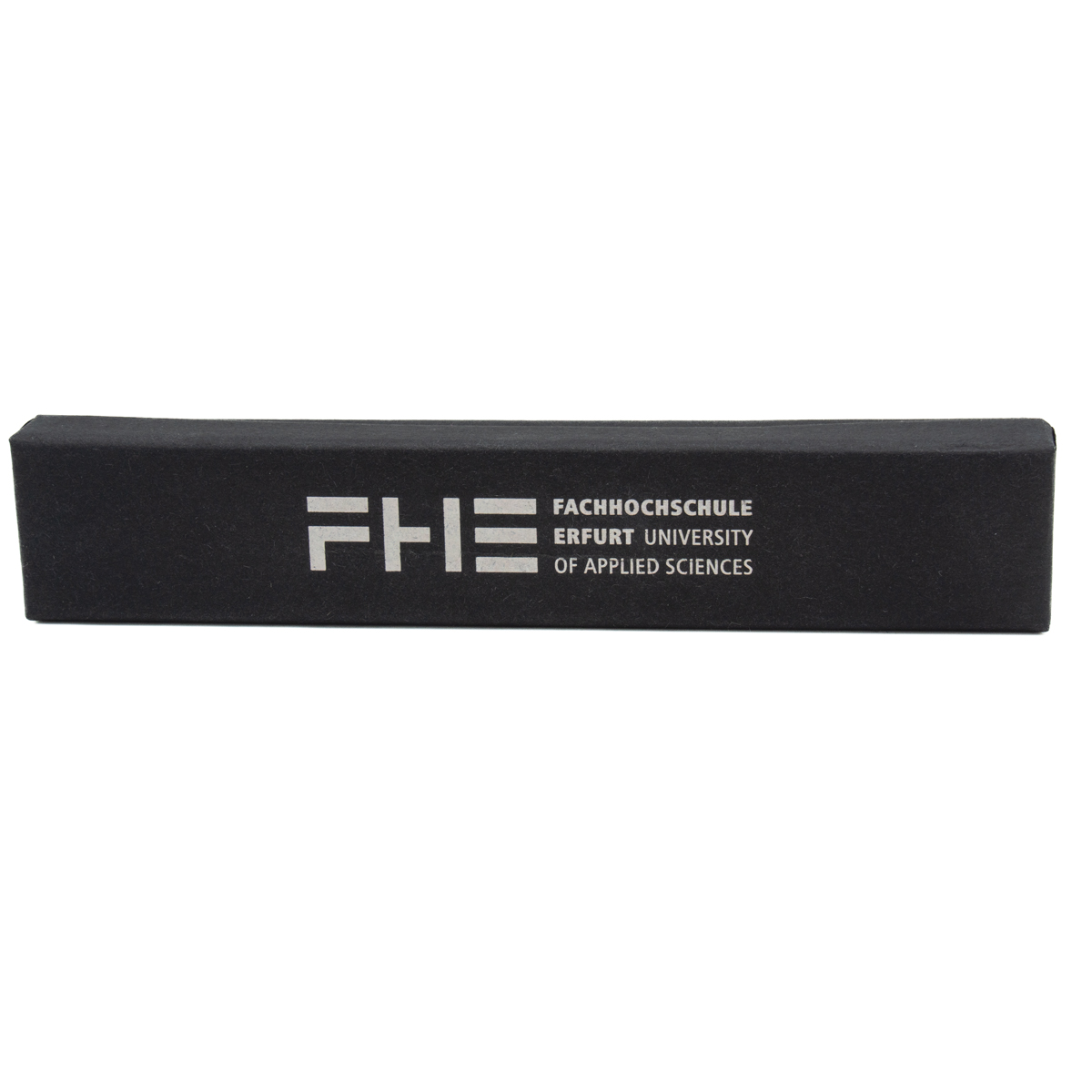 Präsentiert in einer eleganten schwarzen Geschenkbox ist der FHE-Kugelschreiber nicht nur ein Schreibinstrument, sondern auch ein geschmackvolles Geschenk.